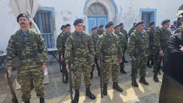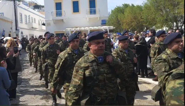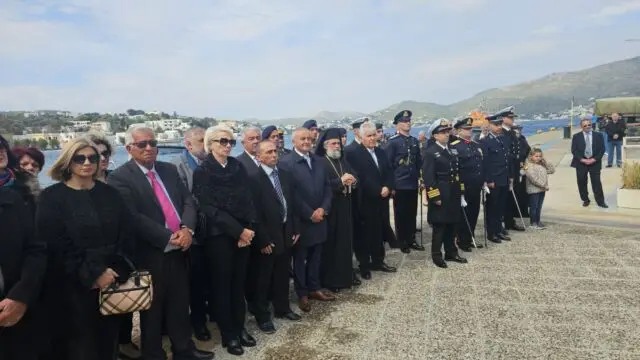 Την ίδια ώρα, οι επίσημοι συγκεντρώθηκαν μπροστά από το Δημαρχείο και στη συνέχεια μετέβησαν στον Μητροπολιτικό Ναό, όπου αποδόθηκαν τιμές από τη Δημοτική Φιλαρμονική και το ένοπλο τμήμα του Φρουραρχείου Λέρου.