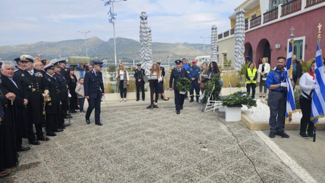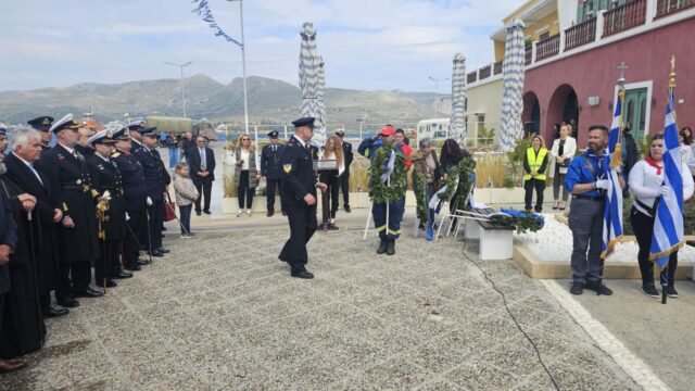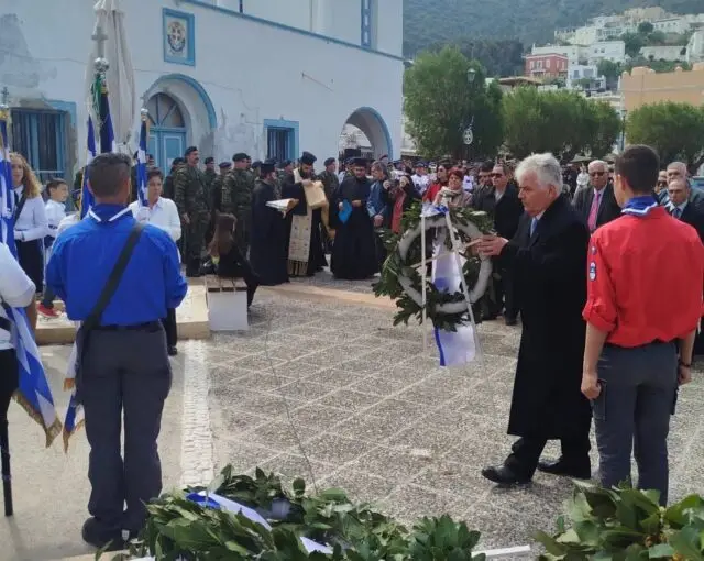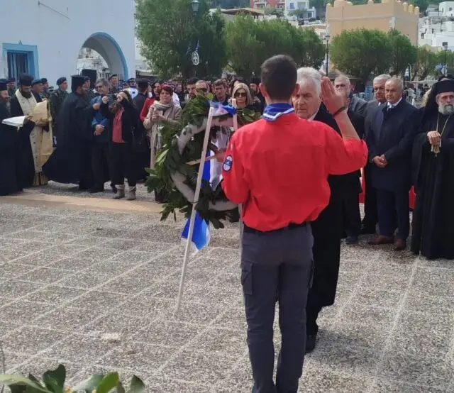 Μετά την επίσημη δοξολογία, χοροστατούντος του Σεβασμιωτάτου Μητροπολίτου Λέρου, Καλύμνου και Αστυπαλαίας κ.κ. Παϊσίου, ακολούθησε η μετάβαση επισήμων, αντιπροσωπειών, λαβάρων και πολιτών στο Μνημείο Παπαναστάση στην Αγία Μαρίνα. Εκεί τελέστηκε επιμνημόσυνη δέηση και πραγματοποιήθηκε η κατάθεση στεφάνων.
