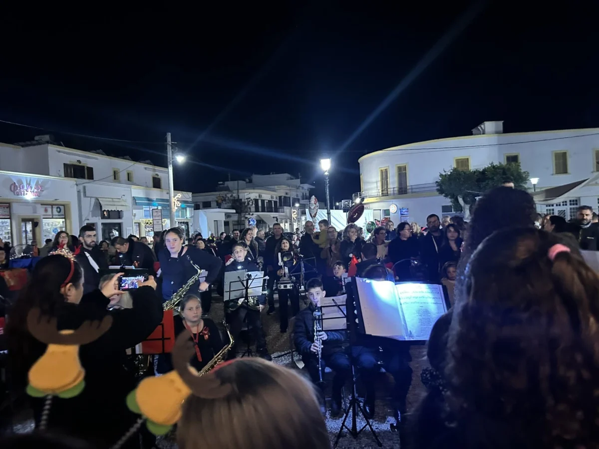 Στις 17:45, η Δημοτική Φιλαρμονική και η Παιδική Χορωδία παρουσίασαν χριστουγεννιάτικες μελωδίες, δημιουργώντας μια ζεστή και εορταστική ατμόσφαιρα.
