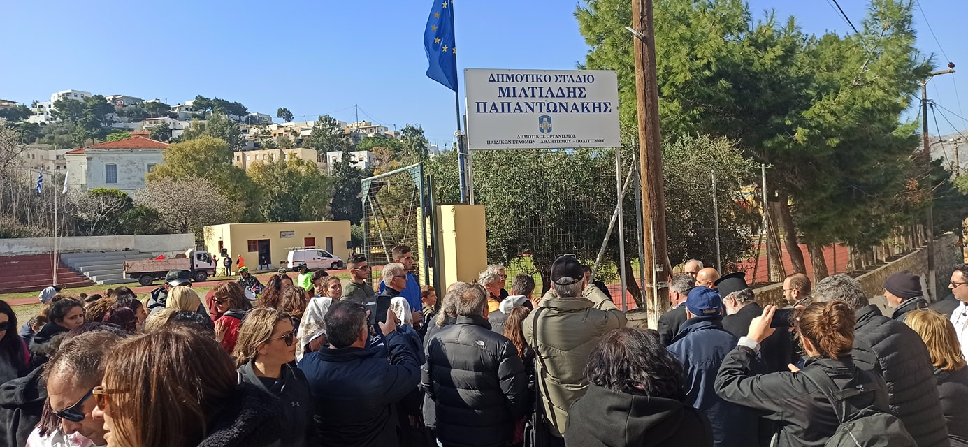 Ακολουθεί η τελετή ονοματοδοσίας του γηπέδου, αφού πρώτα αναγνωσθεί το ψήφισμα θανάτου του εκλιπόντος και η απόφαση του Δημοτικού συμβουλίου Λέρου.