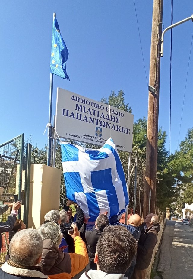 Το Δημοτικό Συμβούλιο, με ψήφισμά και με ομόφωνη απόφασή του, αποφάσισε να ονομασθεί ο συγκεκριμένος χώρος: Στάδιο Στίβου «Μιλτιάδη Παπαντωνάκη». Η επιλογή της ονοματοδοσίας δεν είναι καθόλου τυχαία. Είναι μία οφειλόμενη τιμή στον άνθρωπο που με το μεγαλείο της ψυχής του, ίδρυσε, στήριξε και γιγάντωσε τον αθλητισμό στο νησί μας, οδήγησε πολλούς νέους στα μονοπάτια του, ανέδειξε πολλούς ταλαντούχους αθλητές μας και έθεσε γερά τα θεμέλια της αθλητικής παιδείας στον τόπο μας.