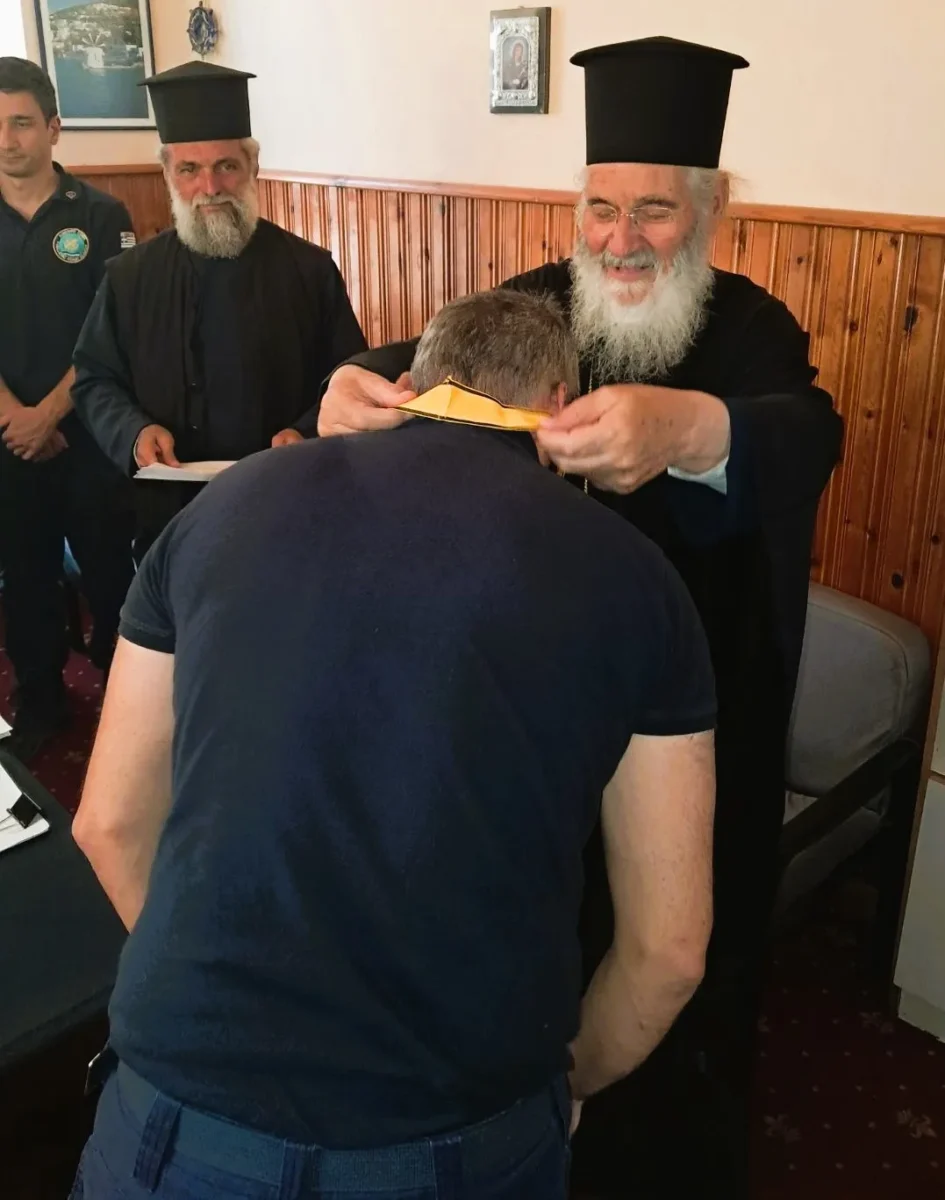 Την Τετάρτη 30 Ιουλίου 2025, ο Σεβασμιώτατος Μητροπολίτης μας κ. Παΐσιος, συνοδευόμενος από τον Θεοφιλέστατο Επίσκοπο Στρατονικείας κ. Στέφανο, και ενώπιον των στελεχών του Λιμεναρχείου Λέρου, απένειμε τον χρυσό σταυρό της εν Δωδεκανήσω Εκκλησίας του Οικουμενικού Θρόνου, στον αποχωρούντα Λιμενάρχη Λέρου Αντιπλοίαρχο Λ.Σ. Χρήστο Ανδριανή, σε ένδειξη προσήλωσης, σεβασμού, τιμής και ευγνωμοσύνης για το πολυσήμαντο έργο που προσέφερε και επιτέλεσε στην τόσο νευραλγική θέση που υπηρέτησε, βοηθώντας καθοριστικά το νησί της Λέρου, συνεργαζόμενος άψογα με τους φορείς και την τοπική Εκκλησία.