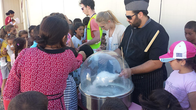 Χαρακτηριστικό παράδειγμα της καλής διάθεσης και προσφοράς των ντόπιων κατοίκων, είναι η συγκινητική κίνηση του ιδιοκτήτη του Ζαχαροπλαστείου – Catering “ΘΕΙΚΟΝ” κ. Θανάση Σκορδάλη, ο οποίος λίγες μέρες πριν το περιστατικό της Πέμπτης, έμαθε ότι δεν υπήρχαν χρήματα από τις ΜΚΟ για να γίνει κάποια εκδήλωση για τη γιορτή του Ραμαζανιού, για τα μικρά προσφυγόπουλα. Έτσι, αν και απλήρωτος για 4 μήνες από το αρμόδιο υπουργείο, αποφάσισε να προσφέρει δωρεάν σε παιδιά και μεγάλους διάφορα γλυκά [ΦΩΤΟ]. Η μοναδική πληρωμή του κ. Σκορδάλη ήταν το παιδικό χαμόγελο που εισέπραξε και μια ζεστή αγκαλιά από τα προσφυγόπουλα.
