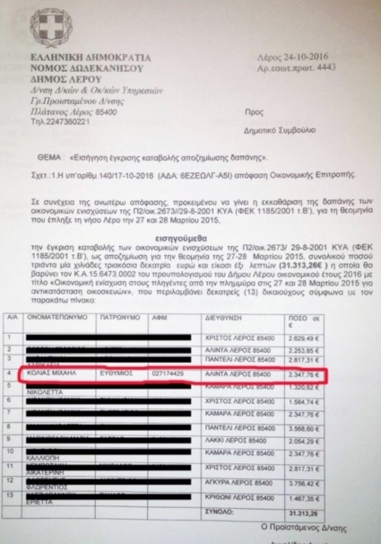 *επισυνάπτουμε το έγγραφο του 2015 που δείχνει την λίστα αποζημιώσεων.