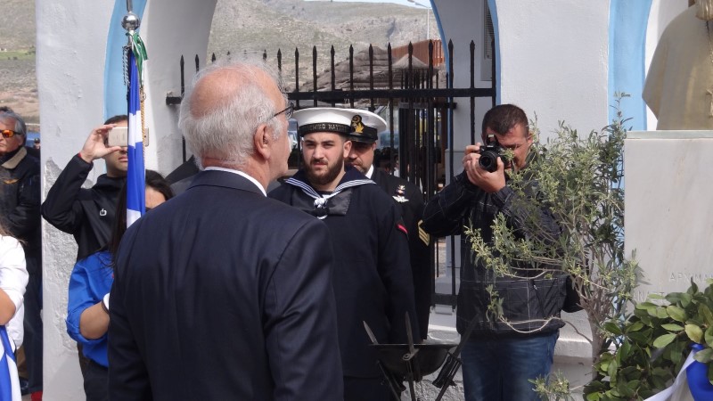 Μετά το πέρας της Δοξολογίας, Κλήρος, Αρχές και Λαός, κατευθύνθηκαν στην Αγία Μαρίνα, όπου προ της προτομής του παπα-Αναστάση Ζαφειρόπουλου, εψάλλη επιμνημόσυνος δέησις και έγιναν οι καταθέσεις στεφάνων. Τιμές απέδωσε η Φιλαρμονική του Δήμου Λέρου και άγημα του Στρατού.