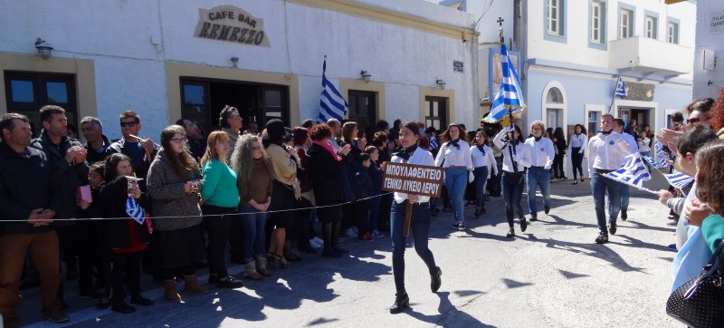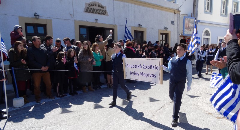 Ο καλός καιρός κατά την ώρα της παρελάσεως, είχε ως αποτέλεσμα πολύς κόσμος να κατακλίσει τον λιμένα της Αγίας Μαρίνας και να καταχειροκροτήσει τα νιάτα του νησιού μας που παρέλασαν.