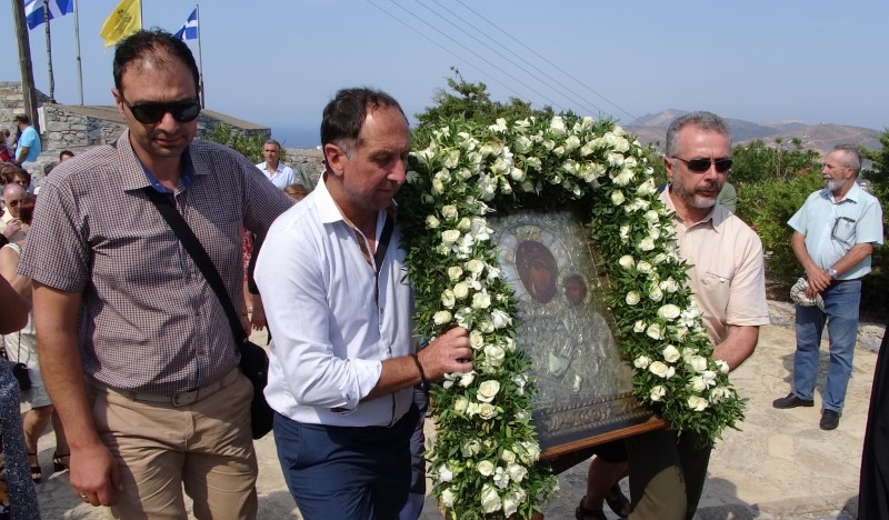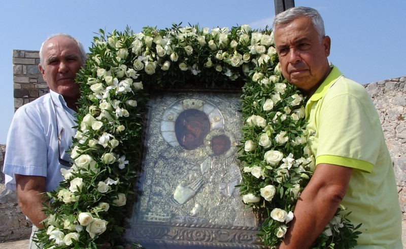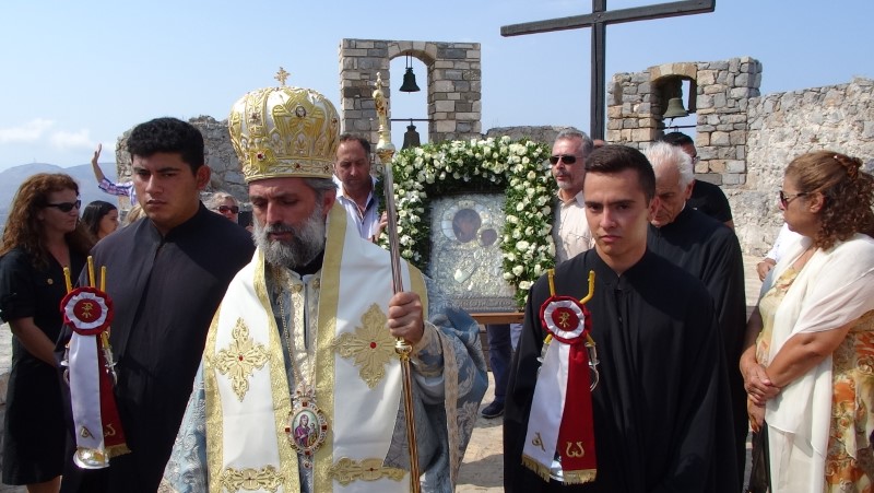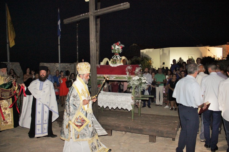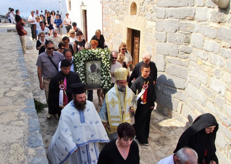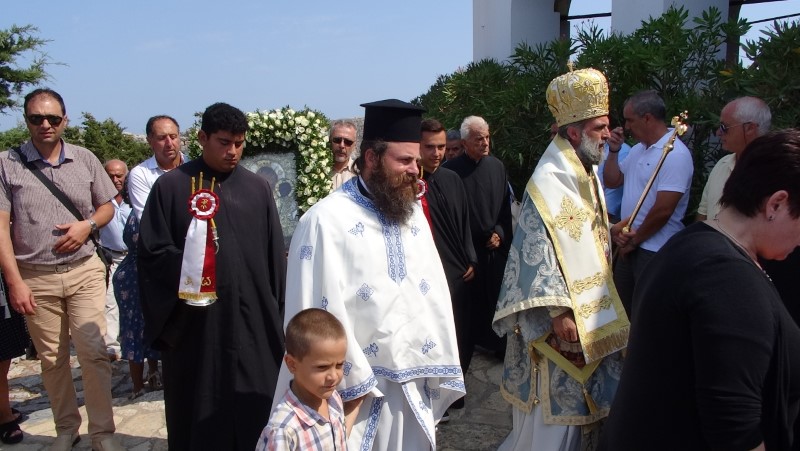 Μετά το πέρας της Θείας Λειτουργίας τελέσθηκε η λιτάνευση της παλαιάς Ιεράς Εικόνος της Παναγίας στα «πεντένια» του Κάστρου.