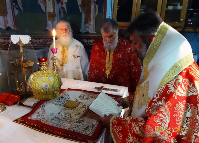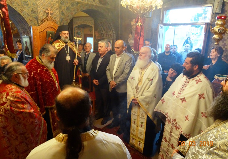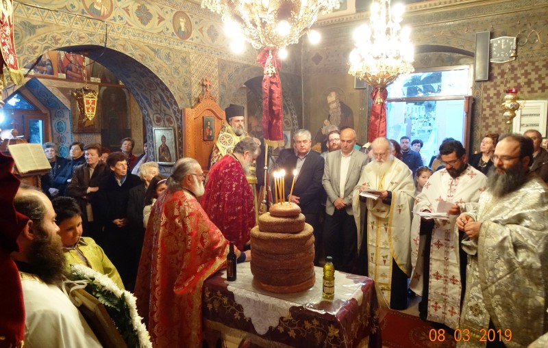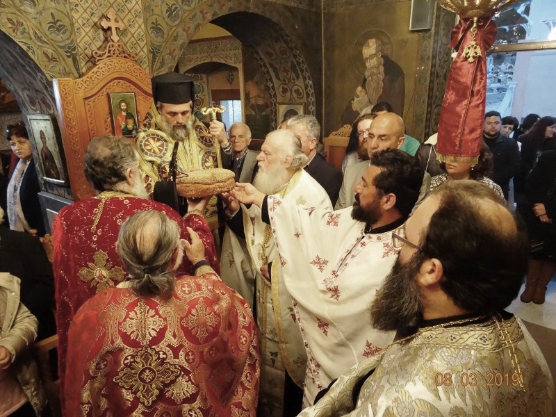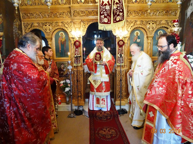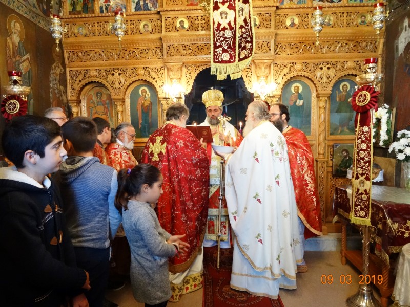 Το πρωί του Σαββάτου 9 Μαρτίου, ετελέσθη Αρχιερατική Θεία Λειτουργία υπό του Θεοφ. Επισκόπου Στρατονικείας κ.Στεφάνου, συμπαραστατουμένου υπό των Αιδεσιμωτάτων πρωτ.Νικοδήμου Φωκά, Αρχιερατικού Επιτρόπου, πρωτ. Μαξίμου Λιβανού, εφημέριου του πανηγυρίζοντος Ιερού Ναού, πρωτ. Σωφρονίου Χατζηλάρη και πρωτ. Δαμασκηνού Παλαπουγιούκ.