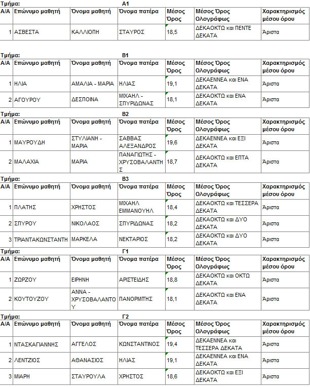 Ανακοινώθηκαν την Παρασκευή 24/6/2016 από το ΕΠΑΛ Λέρου οι αριστεύσαντες μαθητές κατά το σχολικό έτος 2015-2016, όπως παρακάτω: