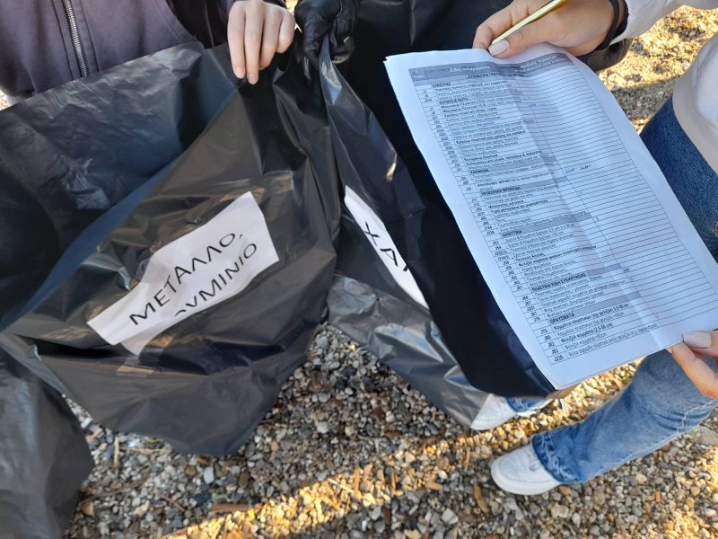 Συμπληρώνοντας τα ειδικά δελτία καταγραφής απορριμμάτων στη διάρκεια του καθαρισμού, εντοπίστηκαν σκουπίδια, αποτσίγαρα, καλαμάκια και πλαστικά μπουκάλια.