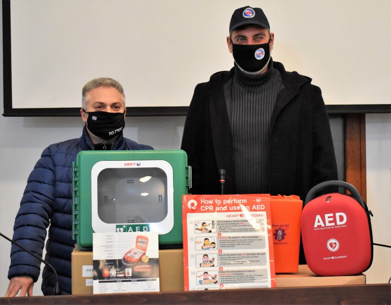 Ο Εμπορικός Σύλλογος Λέρου, λοιπόν, κάνει την αρχή, και παραδίδει στην Ομάδα Έρευνας και Διάσωσης έναν αυτόματο εξωτερικό Απινιδωτή, το ειδικό κουτί φύλαξης του μηχανήματος με τον συναγερμό καθώς και ένα μικρό φαρμακείο περιποίησης τραύματος.