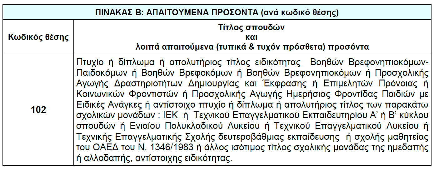 Οι υποψήφιοι της ειδικότητας πρέπει να είναι ηλικίας από 18 έως 65 ετών.