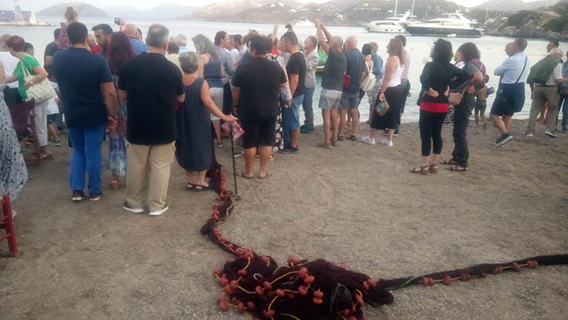 Η εκδήλωση ξεκίνησε στις 19.30 όπου οι ψαράδες μας, παρουσία πλήθους κόσμου, αλίευσαν κάνοντας αναπαράσταση του παραδοσιακού τραβήγματος των διχτυών της τράτας.