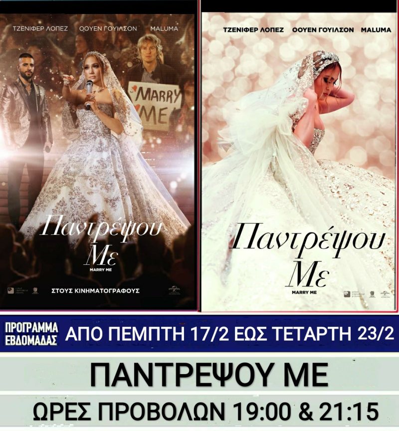 - “Παντρέψου με (Marry Me)” – Ώρες προβολής: 19:00 & 21:15