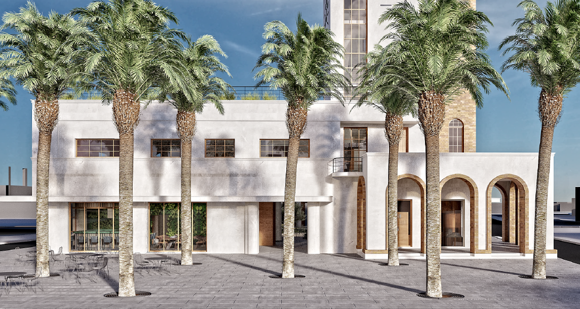 -Περιμετρικά της στοάς, στο ισόγειο του κτιρίου, θα υπάρχει χώρος έκθεσης και προβολής τοπικών προϊόντων. Στο χώρο αυτό πρόκειται να μισθωθούν πάγκοι σε τοπικές επιχειρήσεις για την προβολή, προώθηση αλλά και πώληση τοπικών προϊόντων. Οι πάγκοι αυτοί θα βρίσκονται ανάμεσα στα κατακόρυφα συστήματα έκθεσης της στοάς με σκοπό την ένταξη και ενσωμάτωση της ιστορίας, του πολιτισμού και της διατροφής σε ένα ενιαίο σύνολο.