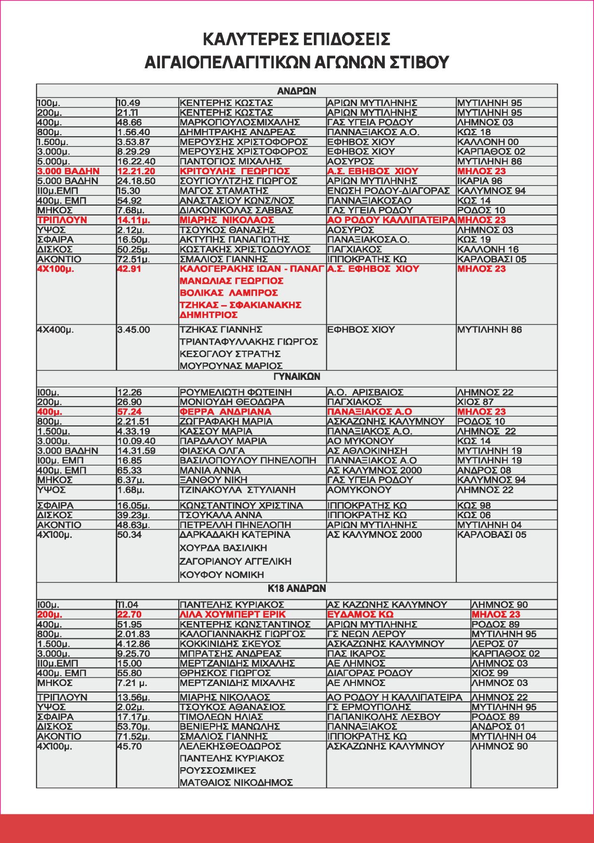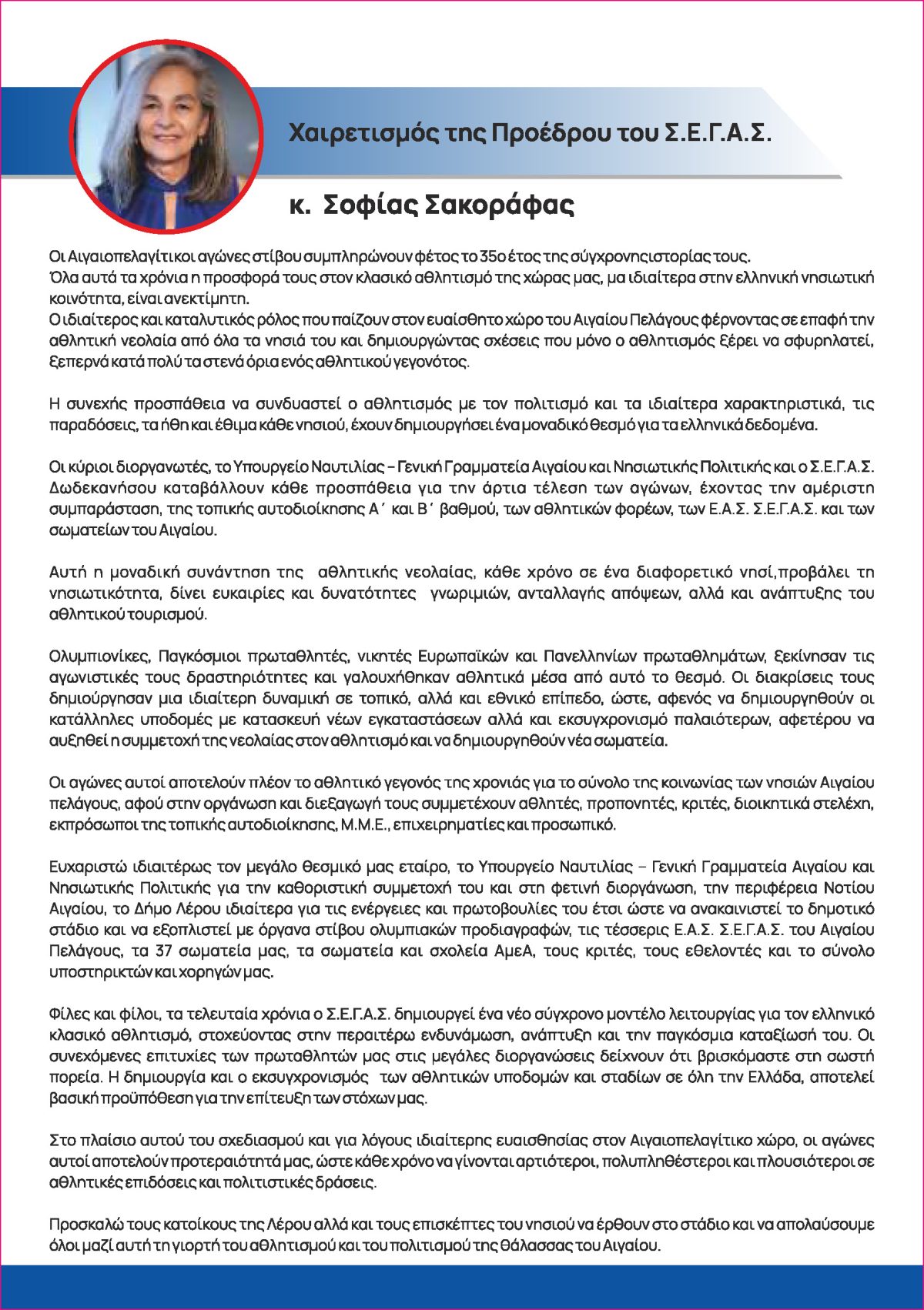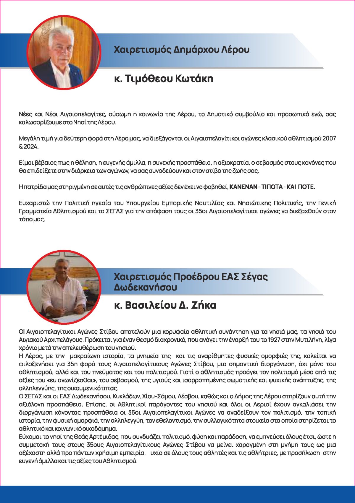 Καταρτίστηκε το πρόγραμμα των 35ων Αιγαιοπελαγίτικων Αγώνων Στίβου, που θα πραγματοποιηθούν το ερχόμενο Σαββατοκύριακο 12 και 13 Οκτωβρίου 2024 στο δημοτικό στάδιο του Ξηροκάμπου.