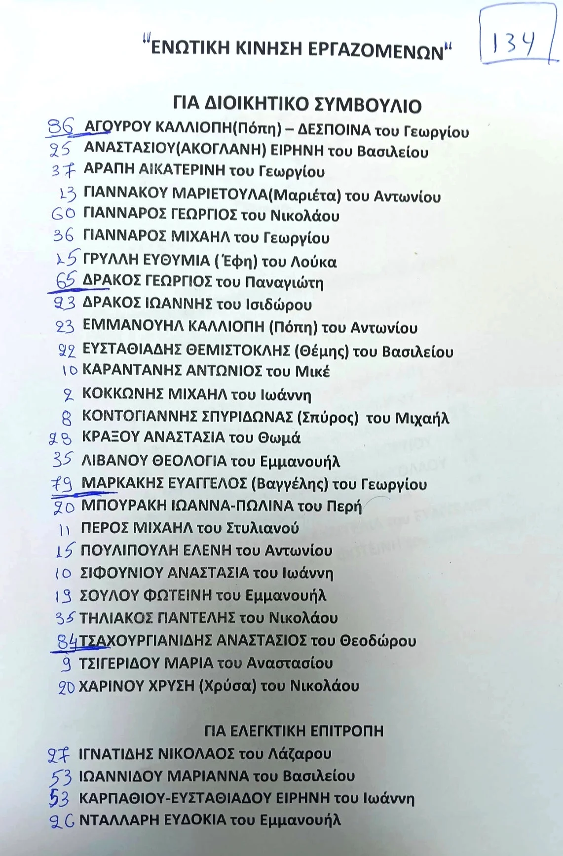 2. “ΕΝΩΤΙΚΗ ΚΙΝΗΣΗ ΕΡΓΑΖΟΜΕΝΩΝ”, έλαβε: 134 ψήφους και 4 έδρες,