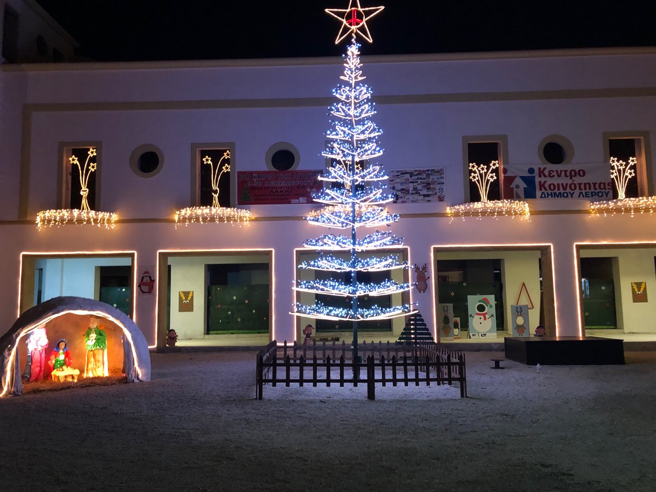 Με πρωτοφανή συμμετοχή μικρών και μεγάλων, παρά τις αντίξοες καιρικές συνθήκες, πραγματοποιήθηκε η φωταγώγηση του Χριστουγεννιάτικου δέντρου και του Χριστουγεννιάτικου Χωριού Αγάπης το οποίο θα λειτουργεί έως 30/12/2018 στην κεντρική πλατεία του ξενοδοχείου Λέρος στο Λακκί.