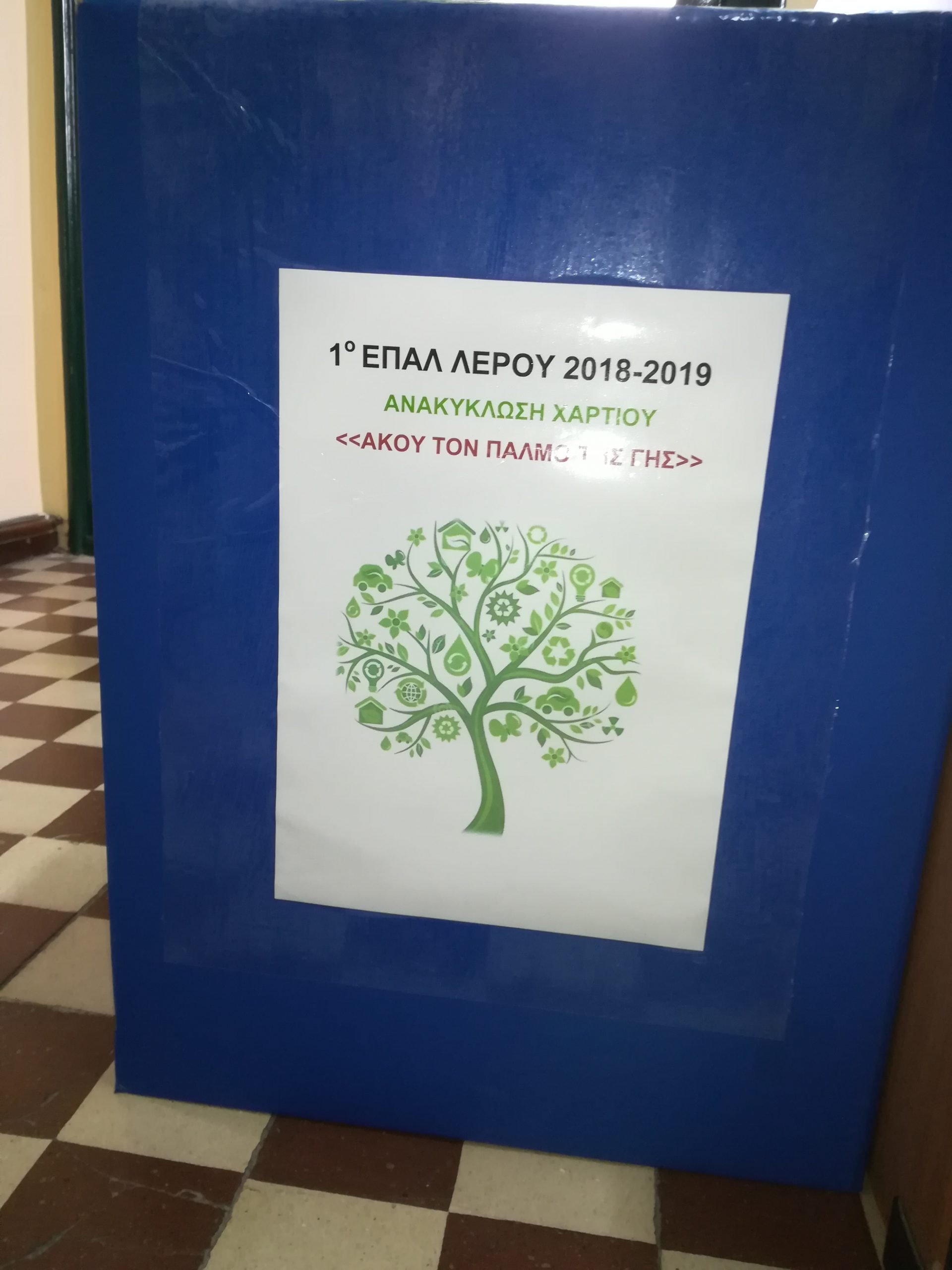 Παράλληλα, προσέφεραν δύο (2) ειδικά διαμορφωμένα χαρτοκιβώτια, για την περισυλλογή του χαρτιού. Επίσης η αντιπροσωπεία του ΕΠΑΛ γνωστοποίησε στον κ. Δήμαρχο ότι πρόκειται να τροφοδοτηθούν οι υπηρεσίες του νησιού μας με αντίστοιχα χαρτοκιβώτια για την ανακύκλωση.