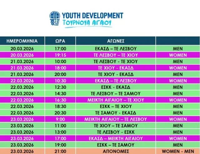 Παρακάτω θα δείτε το πρόγραμμα των αγώνων.