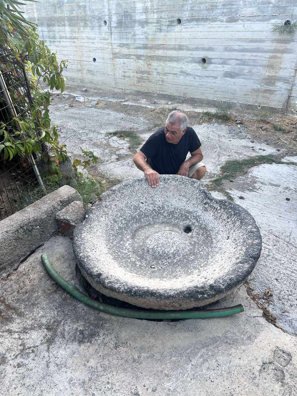 Κατά τον ίδιο τρόπο λοιπόν, σε μια τυχαία συνάντηση με τον αγαπητό φίλο Τάκη Κουμπάρο και μετά από μια συζήτηση που κάναμε, με οδήγησε μπροστά σε μια τεράστια έκπληξη!! Με πήγε σε ένα μέρος όπου μας περίμενε ένας περίτεχνος λαξευμένος μαύρος βράχος που δεν είναι άλλο από το λίθινο κομμάτι του αρχαίου ελαιοτριβείου των Τεμενίων!!