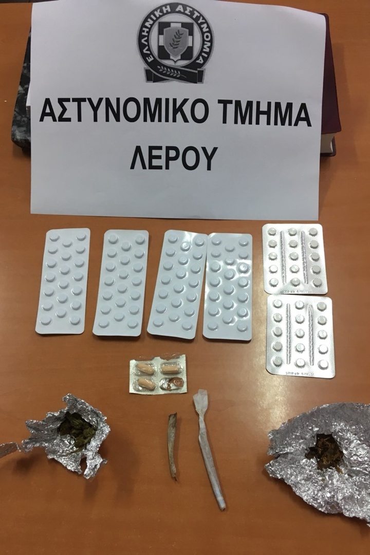 Σήμερα το πρωί (19.7.2018) συνελήφθη στη Λέρο από αστυνομικούς του οικείου Αστυνομικού Τμήματος 44χρονος αλλοδαπός, γιατί στο πλαίσιο στοχευμένης έρευνας που έγινε στην κατοικία του, παρουσία δικαστικού λειτουργού, βρέθηκαν και κατασχέθηκαν -113- ναρκωτικά δισκία, -2- αυτοσχέδια τσιγάρα και ποσότητα ακατέργαστης κάνναβης συνολικού βάρους -3,7- γραμμαρίων.