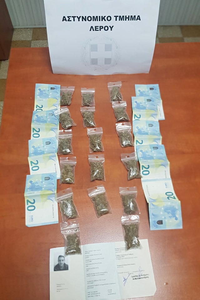 Συνελήφθη τη Δευτέρα 4 Νοεμβρίου 2019 στη Λέρο, από αστυνομικούς του Αστυνομικού Τμήματος Λέρου, ένας 21χρονος αλλοδαπός κατηγορούμενος για κατοχή-διακίνηση ναρκωτικών ουσιών.