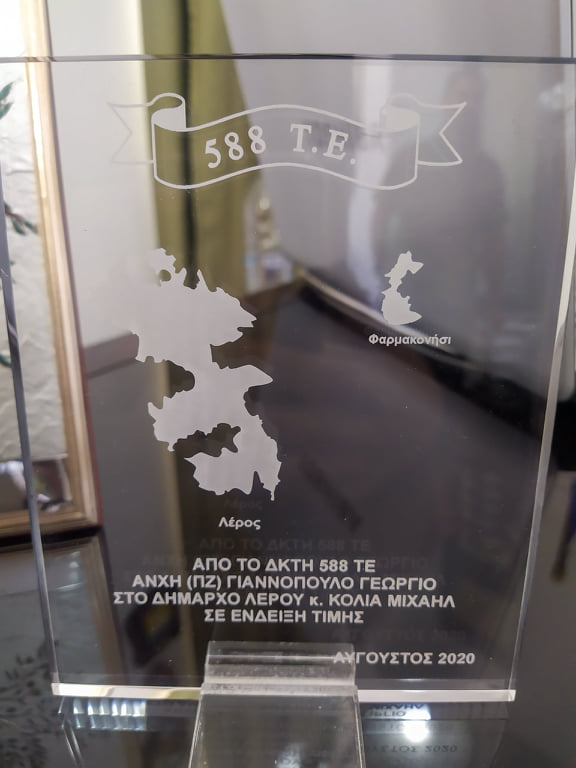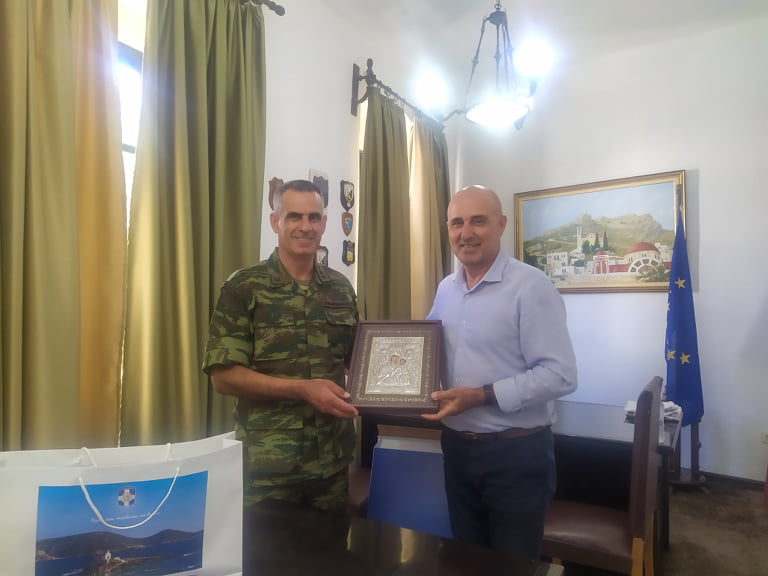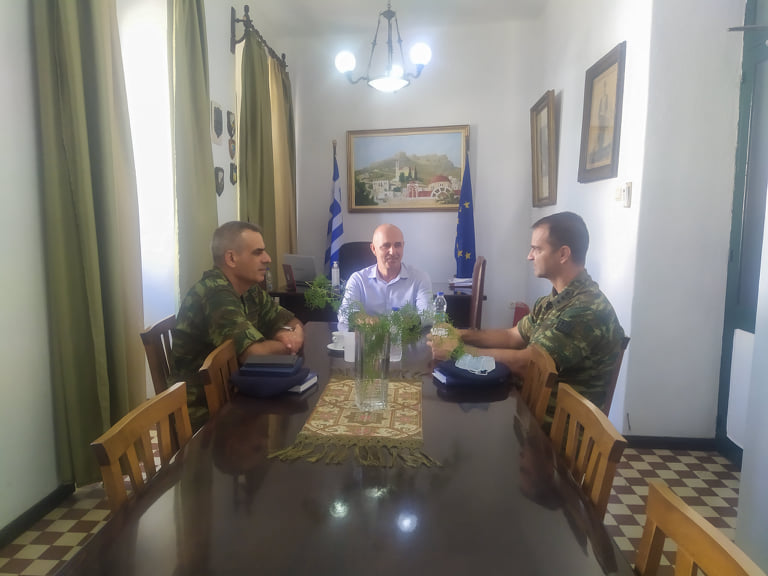 Τον απερχόμενο Διοικητή του 588 ΤΕ κ. Γιαννόπουλο Γ. υποδέχθηκε την Τρίτη 18 Αυγούστου 2020 στο γραφείο του ο Δήμαρχος Λέρου κ. Κόλιας Μ. συνοδευόμενος από το νέο διοικητή κ. Καραμπέλια Κ.