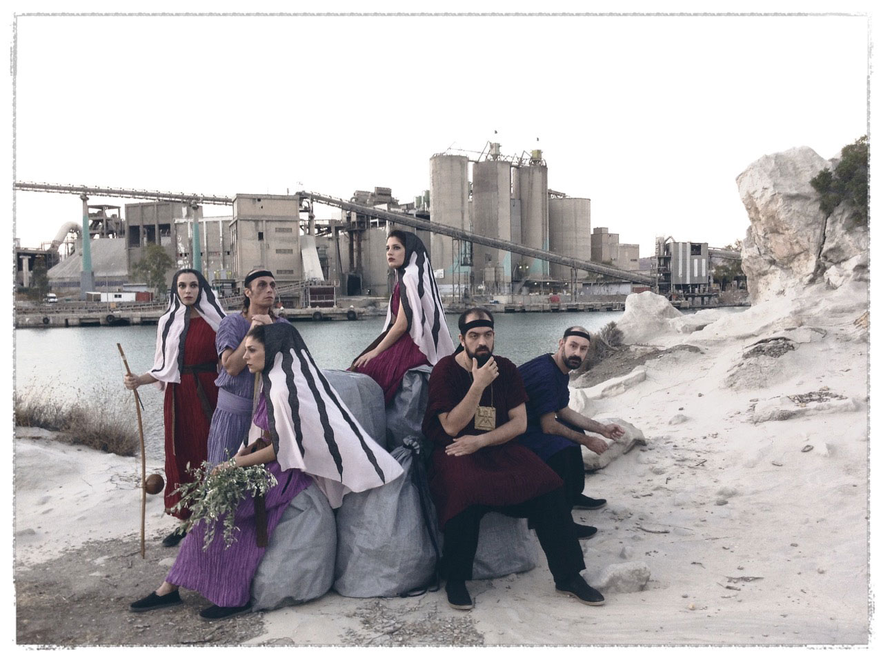 Οι ηθοποιοί, με βάση τη φωνητική και κινητική έκφραση, σχηματίζουν τον χορό και παράλληλα γεννούν και ερμηνεύουν τους ρόλους του έργου.