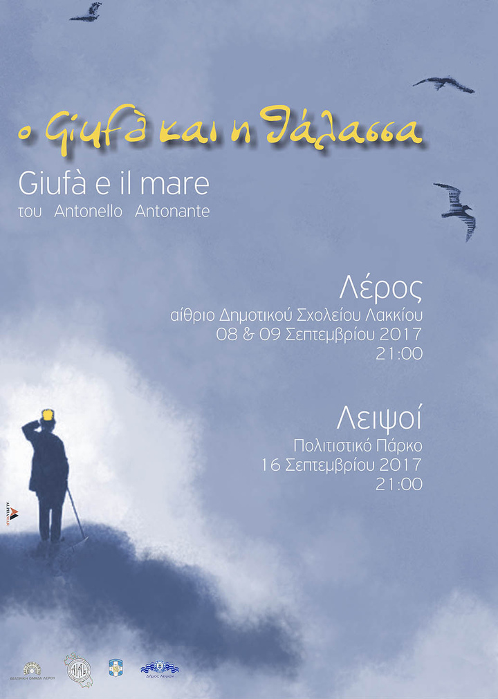 Η Θεατρική Ομάδα Λέρου και ο Ελληνοϊταλικός σύλλογος φίλων της Λέρου Α.Ι.Α.L. παρουσιάζουν, για πρώτη φορά στην Ελλάδα, την παράσταση: «Ο Giufa και η θάλασσα» , του Antonello Antonante, Παρασκευή και Σάββατο 8 και 9 Σεπτεμβρίου 2017, 9:00 μ.μ. αίθριος χώρος Δημοτικού σχολείου Λακκίου. Μία παράσταση για παιδιά από 6 έως 106 ετών!