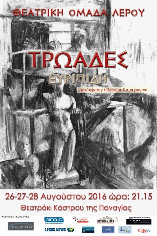 Ένα έργο γεμάτο συναισθήματα, γεμάτο εικόνες, με λόγο άρτιο, απλό, καθαρό. Πλημμυρισμένο με φως, τόσο παλιά γραμμένο μα τόσο σύγχρονο στις μέρες μας. Μία κραυγή, μία διαμαρτυρία κατά του πολέμου. Ο λόγος του Ευριπίδη για τρία βράδια θα ακουστεί καθαρός και δυνατός στο θεατράκι του Κάστρου της Παναγίας στην Λέρο. Εκεί, ψηλά στα τείχη, όπως τότε στα τείχη της Τροία οι γυναίκες της Τροίας όλες μαζί αναμένοντας την τύχη τους μιλάνε, φωνάζουν, πενθούν, κραυγάζουν. Η θεατρική ομάδα Λέρου μας προσφέρει τρεις μοναδικές θεατρικές βραδιές κάτω από τον έναστρο καλοκαιρινό ουρανό της Λέρου!