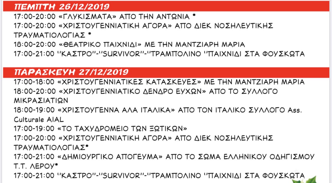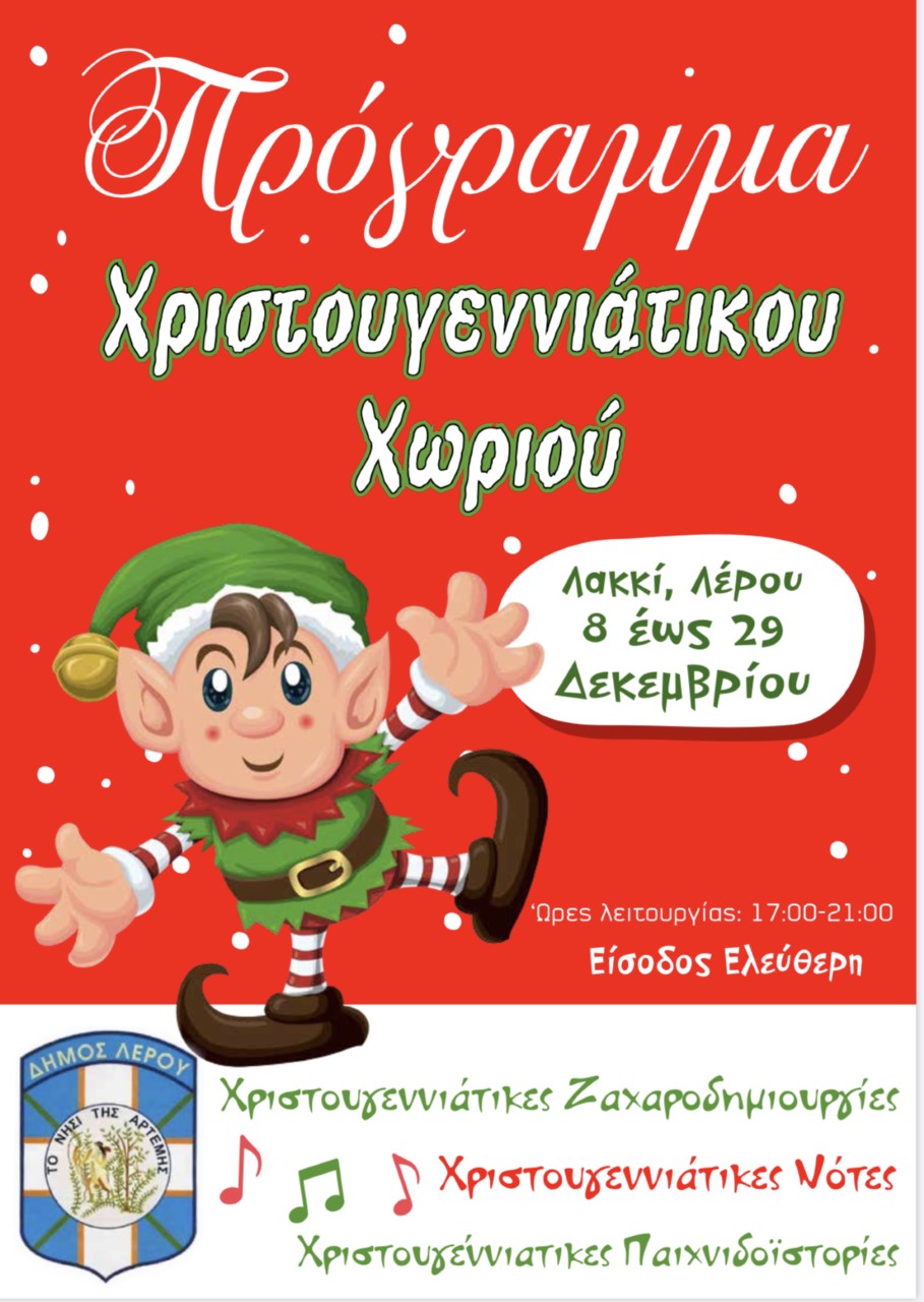 ΠΡΟΣΚΛΗΣΗ: Σας προσκαλούμε την Κυριακή 08/12/2019 και ώρα 18:00 στη Φωταγώγηση του Χριστουγεννιάτικου Δέντρου που θα γίνει στην πλατεία του Ξενοδοχείου “ΛΕΡΟΣ” (στο Χριστουγεννιάτικο Χωριό) στο Λακκί.