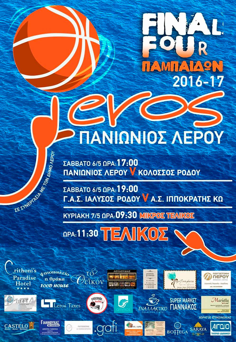 “Ο ΑΟΚ Πανιώνιος Λέρου, σε συνεργασία με το Δήμο Λέρου (Δ.Ο.ΠΑΙ.Σ.Α.Π) διοργανώνει την τελευταία φάση (final four) του Παμπαιδικού Δωδεκανησιακού πρωταθλήματος στις 6 & 7 Μαΐου στη Μερικιά Λέρου.