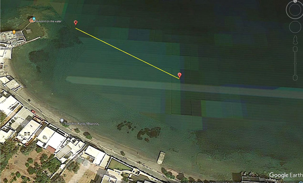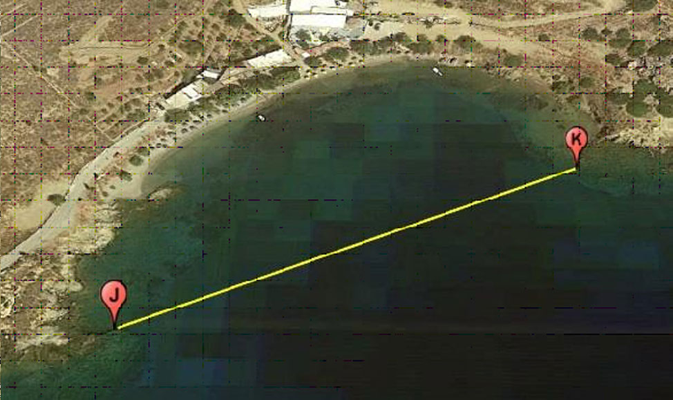 η) “ΚΑΤΣΑΔΙΑ” Δήμου Λειψών και συγκεκριμένα, στο θαλάσσιο χώρο που αποτελεί χώρο λήψης θαλάσσιου λουτρού και περικλείεται από την παραλιακή χερσαία ζώνη και τις νοητές ευθείες που ορίζουν τα κάτωθι σημεία, όπως αποτυπώνονται στο επισυναπτόμενο απόσπασμα δορυφορικής απεικόνισης: