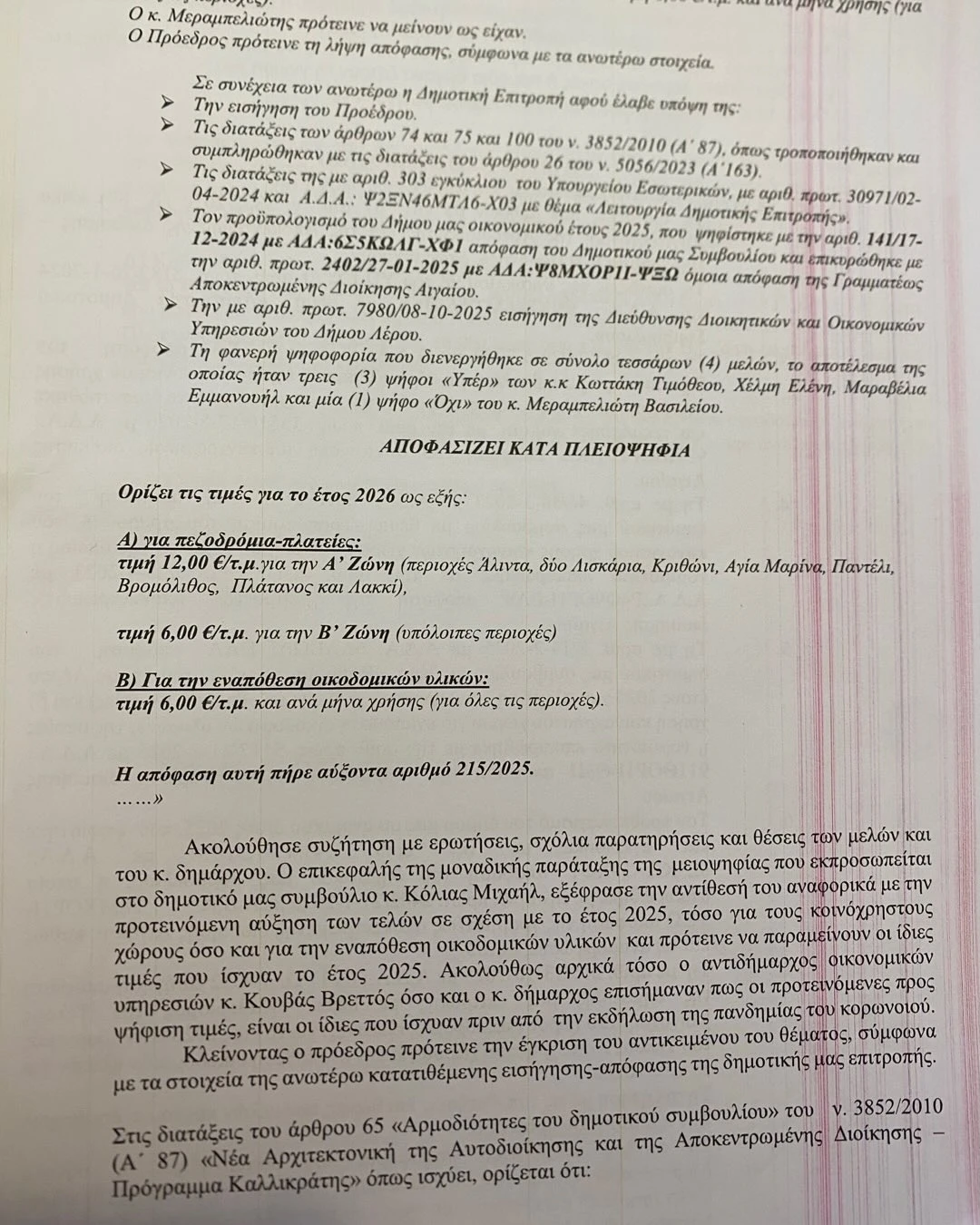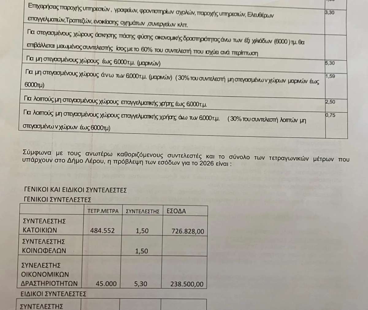 Ως επικεφαλής της μείζονος αντιπολίτευσης, οφείλω να ενημερώσω υπεύθυνα όλους τους πολίτες της Λέρου για τις νέες υπέρογκες αυξήσεις που επέβαλε η Δημοτική Αρχή για το έτος 2026, τόσο στους συντελεστές του ενιαίου ανταποδοτικού τέλους καθαριότητας και φωτισμού, όσο και στα τέλη χρήσης κοινόχρηστων χώρων, όπως επίσης και στα τέλη εναπόθεσης οικοδομικών υλικών.