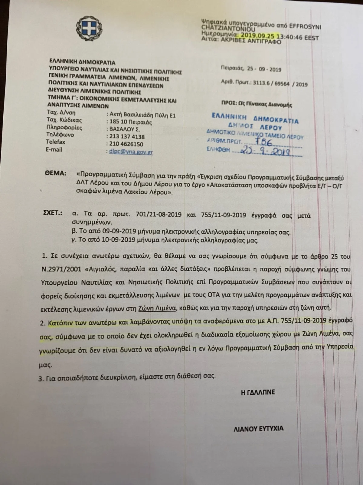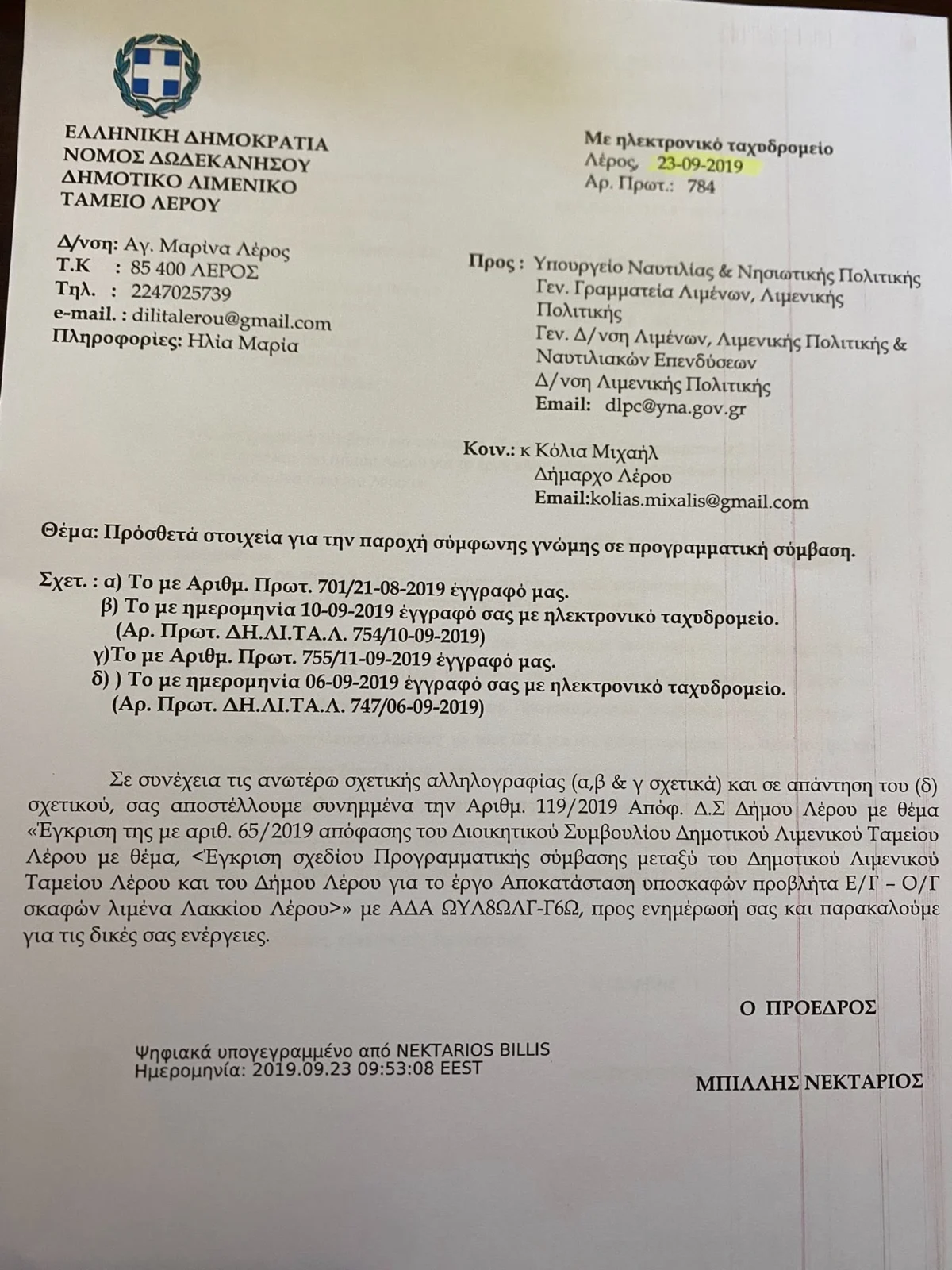 Δελτίο Τύπου – Σε συνέχεια όσων ακούστηκαν δημόσια από τον κ. Κωττάκη και τους συνεργάτες του σχετικά με τα έργα στον λιμένα Λακκίου στο Ξενοδοχείο «Λέρος», αλλά και την αναμενόμενη έναρξη εργασιών στον ΧΥΤΥ οφείλω να αποκαταστήσω την αλήθεια με τεκμηριωμένα στοιχεία.