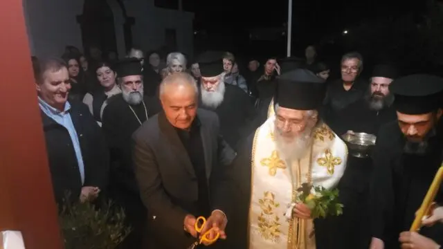 Ιδιαίτερα συμβολική στιγμή της εκδήλωσης ήταν η κοπή της κορδέλας, η οποία πραγματοποιήθηκε από κοινού από τον Σεβασμιώτατο και τον Πρόεδρο του Δημοτικού Συμβουλίου, εγκαινιάζοντας επίσημα έναν χώρο που πλέον μπορεί να φιλοξενεί πολιτιστικές, κοινωνικές και νεανικές δραστηριότητες με σύγχρονες προδιαγραφές.