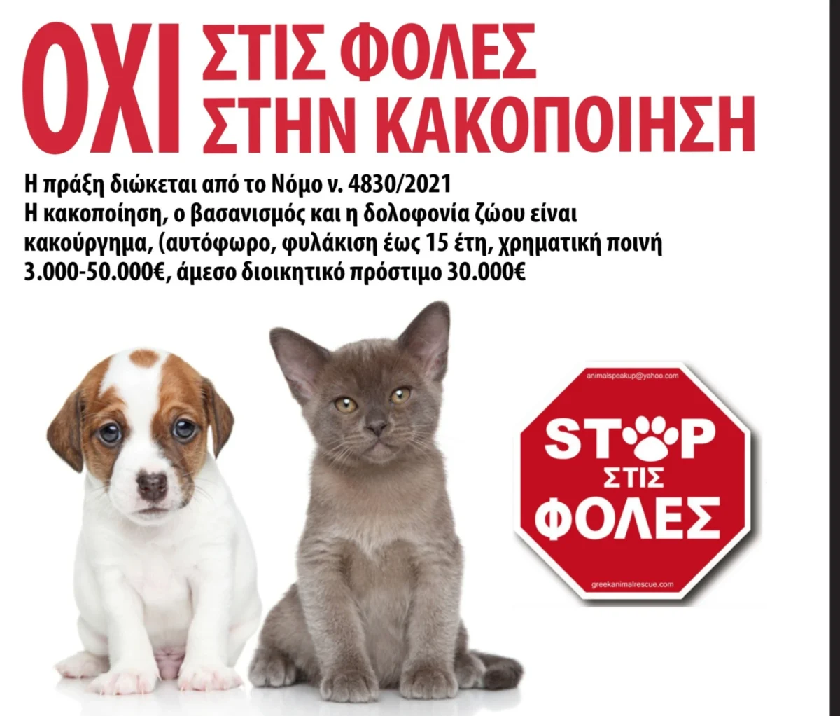 Όπως τονίζεται στην ανακοίνωση, η οποία συνοδεύεται και από σχετικό φωτογραφικό υλικό νεκρών ζώων, η σίτιση αδέσποτων ζώων από εθελοντές είναι απολύτως νόμιμη, σύμφωνα με τον Νόμο 4619/2019 (Άρθρο 33). Αντίθετα, η καταστροφή δοχείων σίτισης ή κάθε πράξη που παρεμποδίζει τη φροντίδα τους τιμωρείται από τη νομοθεσία.