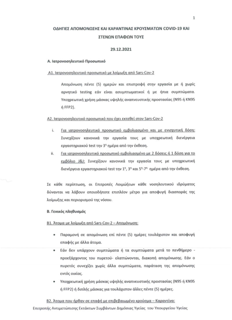 Οδηγίες Απομόνωσης Κρουσμάτων Covid-19 και στενών τους επαφών, απέστειλε στα ΜΜΕ η διοίκηση του ΚΘΛ, όπου αναφέρονται τα εξής: