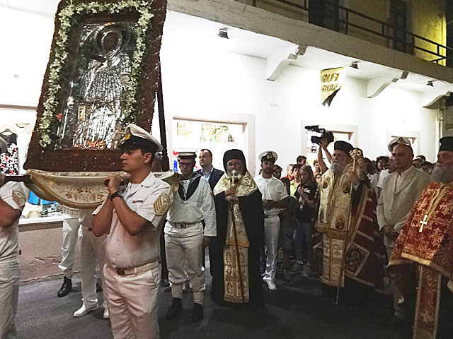 Κατά τον Εσπερινό παρέστησαν οι τοπικές πολιτικές και στρατιωτικές Αρχές και πλήθος πιστών, οι οποίοι με ευλάβεια άναψαν το κεράκι τους και ασπάσθηκαν την Εικόνα της Αγίας.