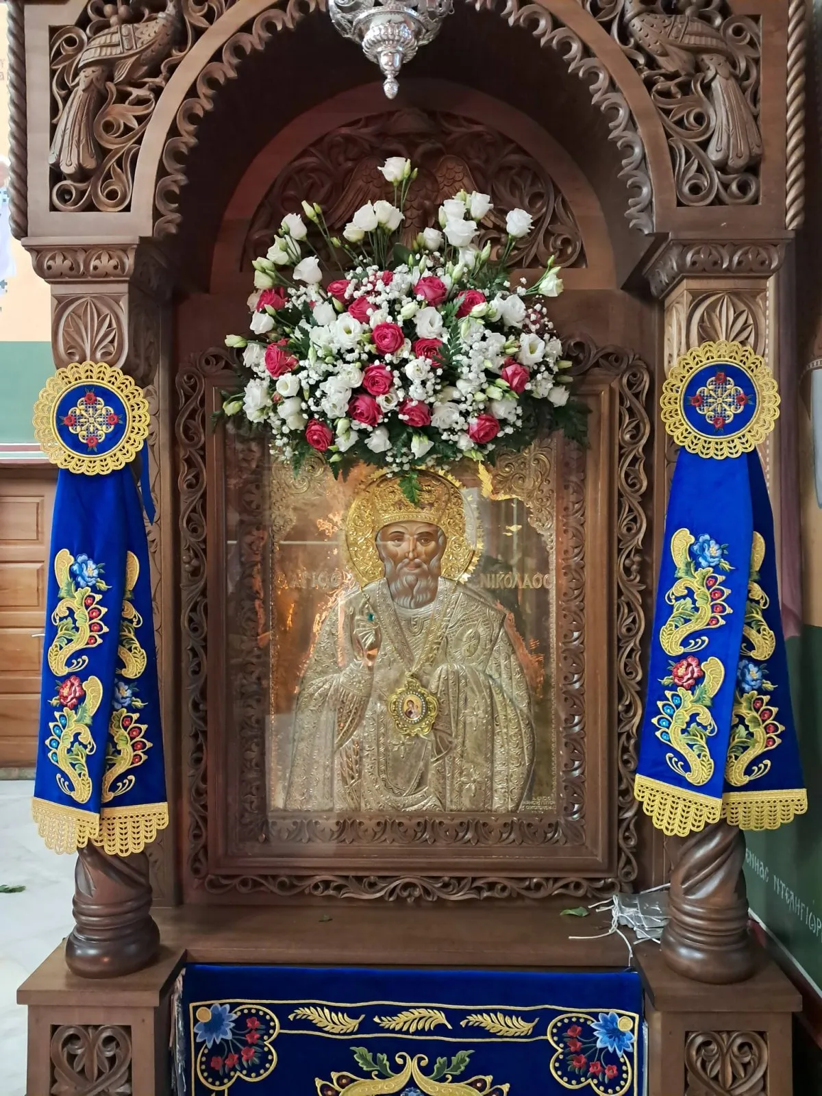 Μετά το πέρας της Θ.Λειτουργίας και Δοξολογίας, λόγω της έντονης βροχόπτωσης που επικρατούσε δεν κατέστη δυνατή η κατ’ έθος λιτάνευση της Ιεράς Εικόνος του Αγίου Νικολάου. Αξίζει όμως να σημειωθεί η παρουσία της Δημοτικής Φιλαρμονικής, η οποία υπό την διεύθυνση της αρχιμουσικού Κατερίνας Μαυρουδή, απέδωσε τις κεκανονισμένες τιμές κατά την άφιξη των επισήμων και κατόπιν αποχώρησε λόγω των κακών καιρικών συνθηκών.