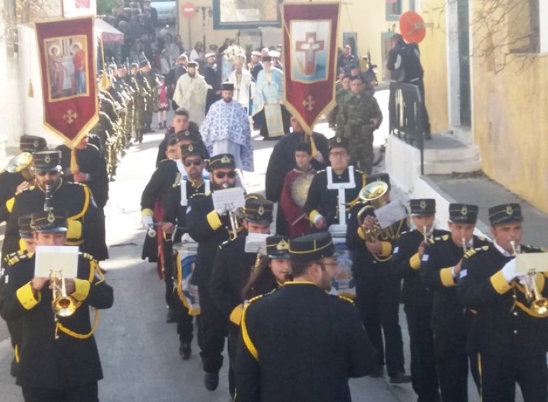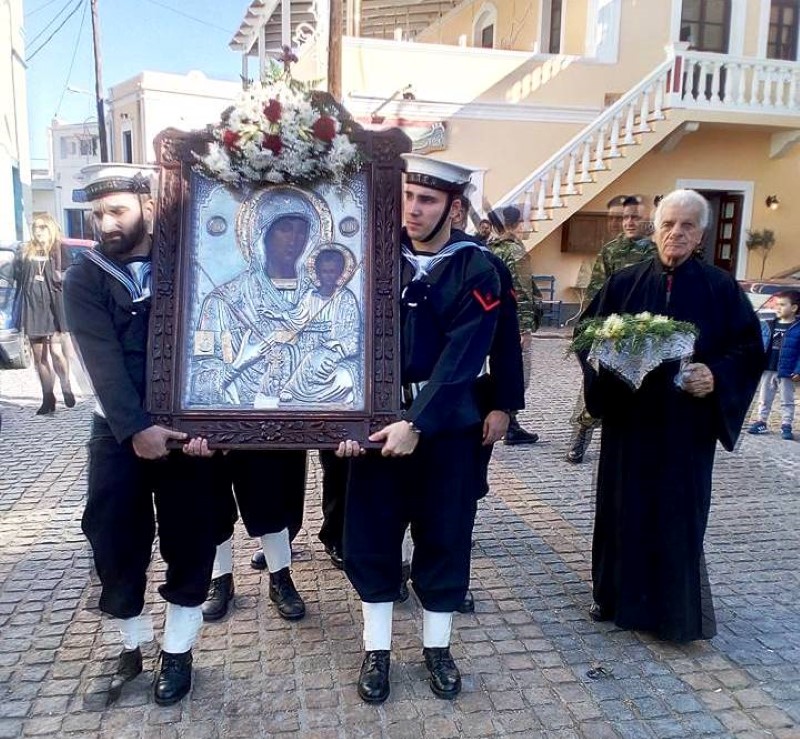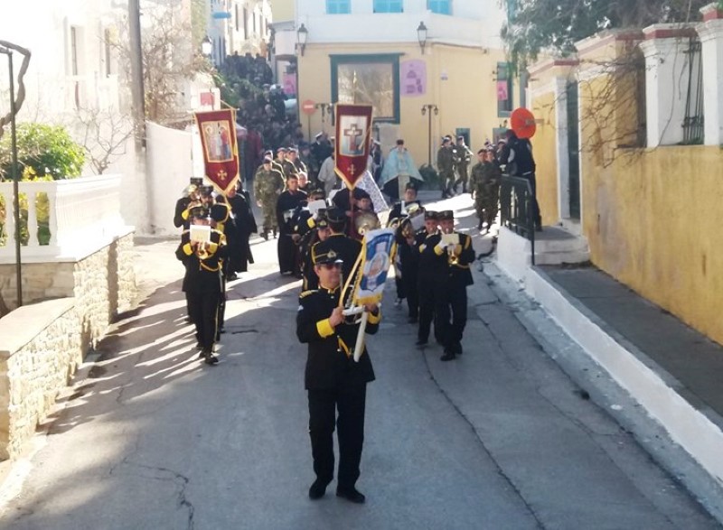 Της πομπής προπορευόταν η Δημοτική Φιλαρμονική και ακολουθούσαν τιμητικό άγημα του Στρατού, τα Ιερά Εξαπτέρυγα, οι Ιεροψάλτες μας, ο Θεοφ. Επίσκοπος Στρατονικείας κ. Στέφανος, ο Αρχιερατικός Επίτροπος πρωτ.Νικόδημος Φωκάς, ο Ιερός Κλήρος που έφερε τον Τίμιο Σταυρό, η Εικόνα της Παναγίας που βάσταζαν ναύτες του Πολεμικού Ναυτικού, οι Αρχές του νησιού, και πλήθος κόσμου.