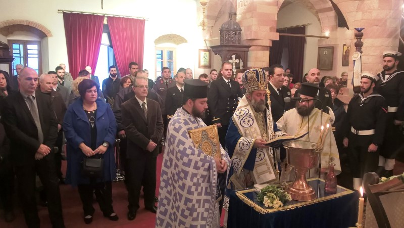 Στο λιμάνι της Αγίας Μαρίνας, πάνω σε ειδική εξέδρα, ετελέσθη ο Αγιασμός των υδάτων, παρουσία του Δημάρχου Λέρου κ. Μιχ. Κόλλια, των αντιδημάρχων, δημοτικών συμβούλων και εκπροσώπων των ενόπλων δυνάμεων και σωμάτων ασφαλείας του νησιού.