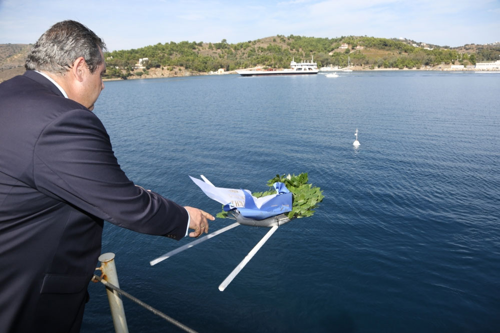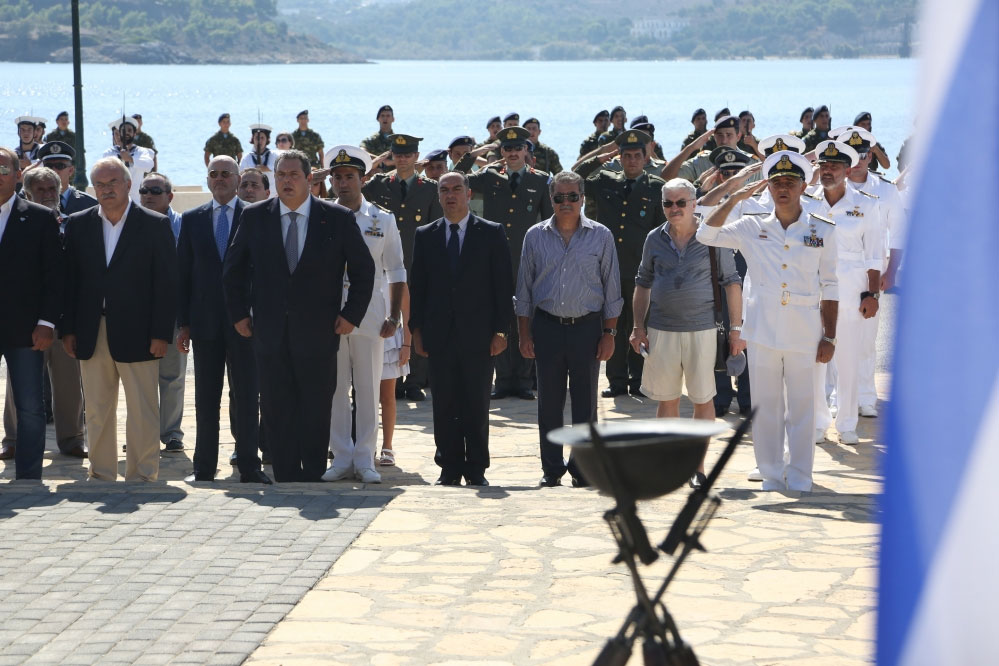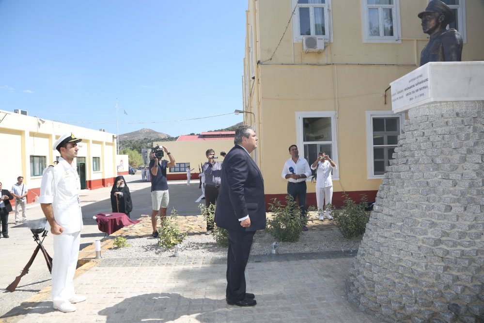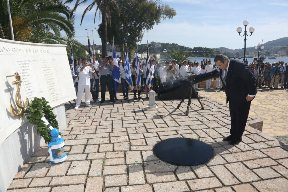 Ο Υπουργός Εθνικής Άμυνας Πάνος Καμμένος, συνοδευόμενος από τον Αρχηγό ΓΕΝ Αντιναύαρχο Γεώργιο Γιακουμάκη ΠΝ, παρέστη στη Λέρο στις εκδηλώσεις για τα 72 χρόνια από τη βύθιση του αντιτορπιλικού Βασίλισσα Όλγα και στα αποκαλυπτήρια της προτομής του ήρωα Αντιναυάρχου Χριστόδουλου Καραθανάση ΠΝ.