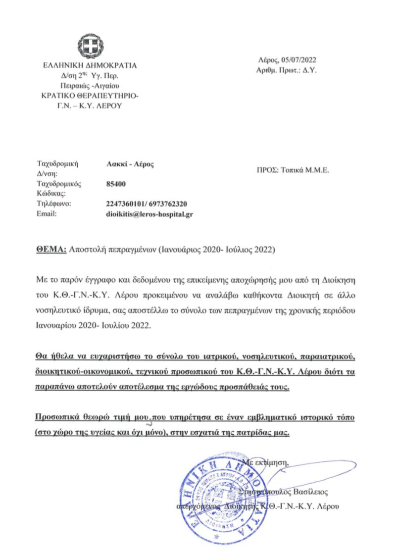 Πεπραγμένα ΚΘ-ΓΝ-ΚΥ ΛΕΡΟΥ Ιανουάριος 2020-Ιούλιος 2022