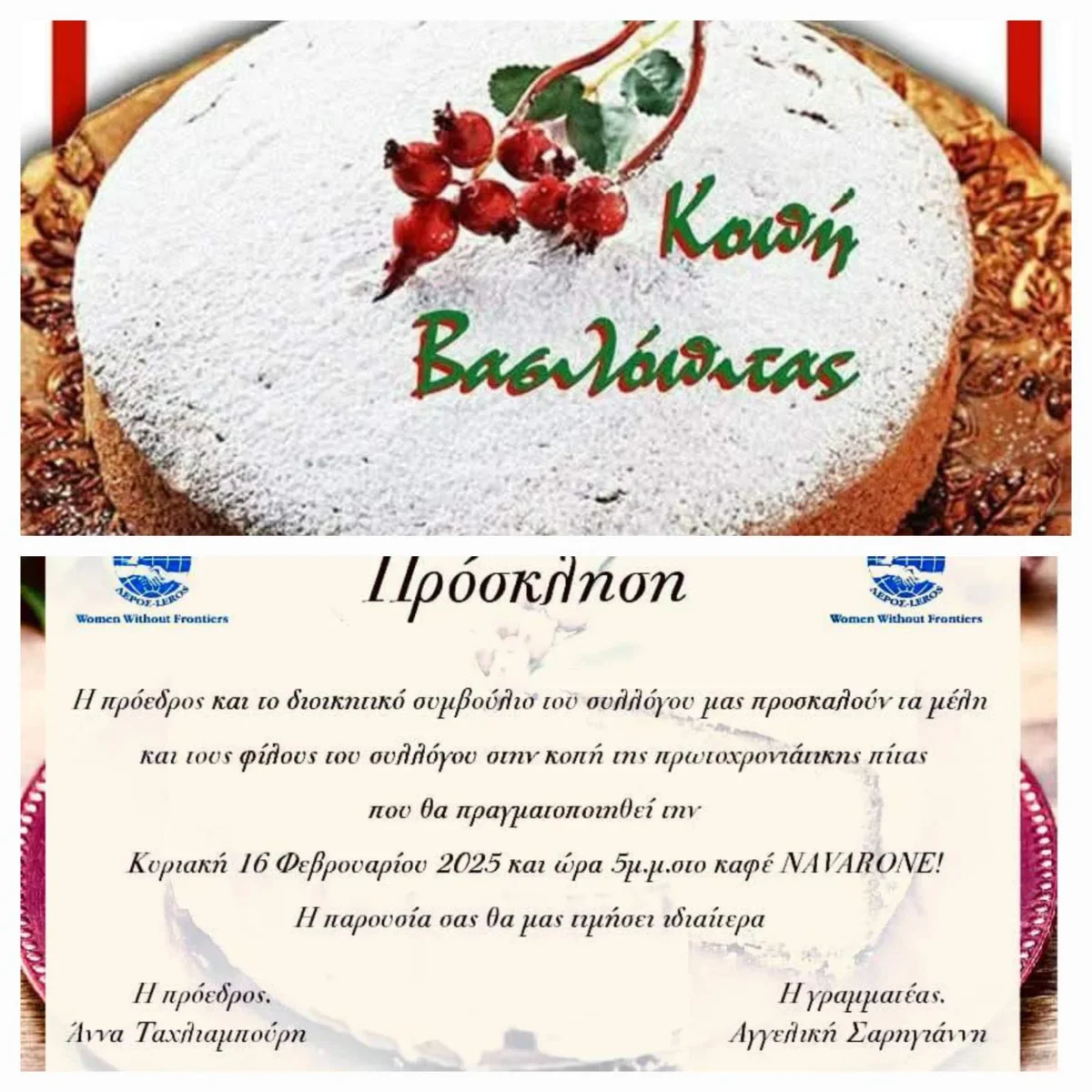 Αρχική » ΟΛΕΣ ΟΙ ΕΙΔΗΣΕΙΣ » ΤΑ ΝΕΑ ΤΗΣ ΛΕΡΟΥ » Πρόσκληση στην κοπή της Βασιλόπιτας από τον σύλλογο “Γυναίκες χωρίς σύνορα” Λέρου