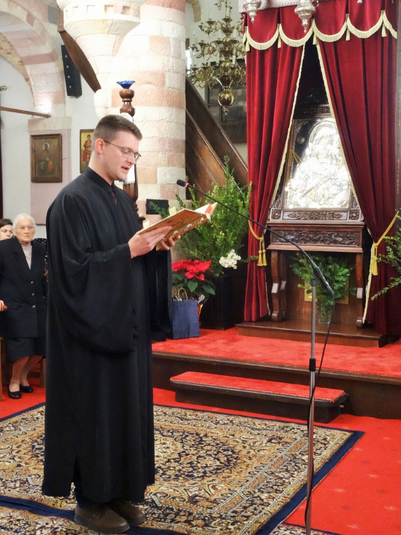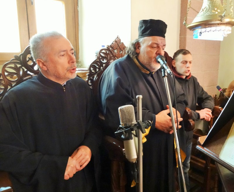 Στο Ιερό Αναλόγιο έψαλλαν οι καλλίφωνοι ιεροψάλτες υπό την διεύθυνση του Πρωτοψάλτου Ελευθερίου Χατζηλάρη, Ιωάννης Γκιουζέππος, Άγγελος Αγγελίδης και Ιωάννης Χατζηλάρης.