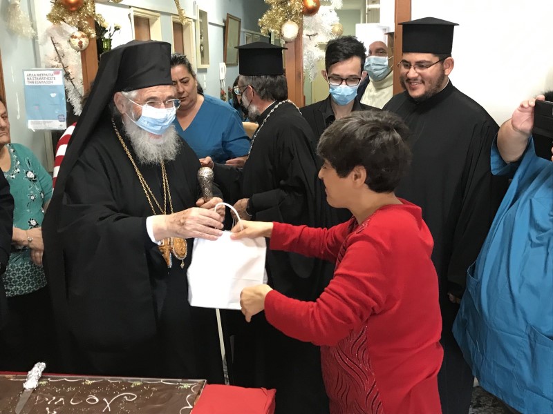 Στο πάντοτε φιλόξενο περιβάλλον του Γηροκομείου μας ο Σεβασμιώτατος συνεχάρη και ευχαρίστησε όλους τους συνανθρώπους μας, αλλά και εκείνους τους παράγοντες και φορείς, συλλόγους, ενορίες, σχολεία, προσκοπισμό, τους ομογενείς μας, αλλά και όλους τους γνωστούς και αγνώστους, επωνύμους και ανωνύμους, που βοηθούν και συνεισφέρουν καθημερινά και με κάθε τρόπο στην εύρυθμη λειτουργία του Ιδρύματος. Πολλές ευχαριστίες απηύθυνε στα μέλη του Διοικητικού Συμβουλίου, στον Διευθυντή Θεοφ. Επίσκοπο Στρατονικείας κ. Στέφανο, αλλά και στο υπαλληλικό προσωπικό, που φροντίζουν πάντοτε για την καλή λειτουργία του Ιδρύματος, το οποίο εδώ και 63 χρόνια διακονεί τον άνθρωπο. Τέλος ο Μητροπολίτης μοίρασε δώρα στους γέροντες και τους ευχήθηκε «καλή και ευλογημένη χρονιά».