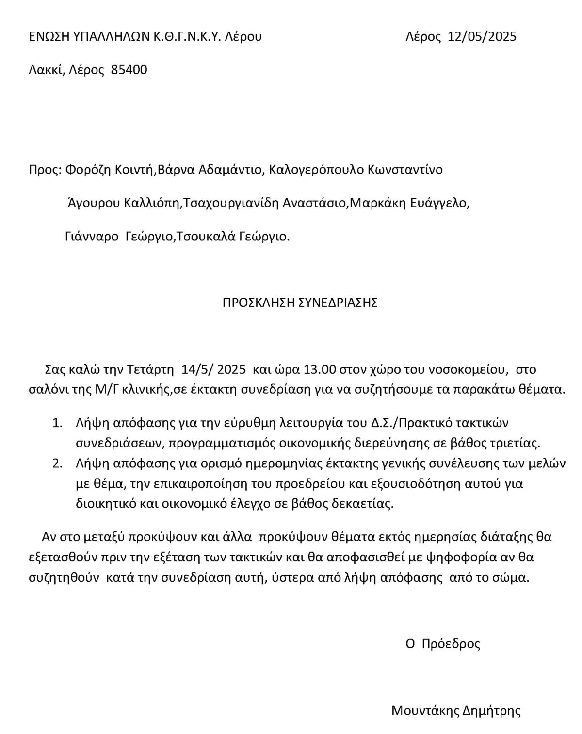 Στη δημοσιότητα δόθηκε η επιστολή – απάντηση της Ενωτικής Κίνησης Εργαζομένων αναφορικά με την πρόσκληση που εξέδωσε ο κ. Μουντάκης για τη Γενική Συνέλευση στις 30 Μαΐου:
