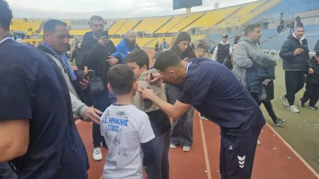Ο γνωστός ποδοσφαιριστής με καταγωγή από τη Λέρο, υπέγραψε εκατοντάδες αυτόγραφα, ενώ δεν ήταν λίγοι οι μικροί φίλαθλοι του Ηρακλή που τον πλησίασαν για να υπογράψει στις φανέλες τους, σε ένα κλίμα ενθουσιασμού και συγκίνησης.
